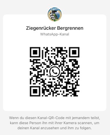 Neu ist unser WhatsApp Kanal, hier findet Ihr u.a. Bilder vom 11. Ziegenruecker Bergrennen (einfach den QR-Code scannen und abonnieren).